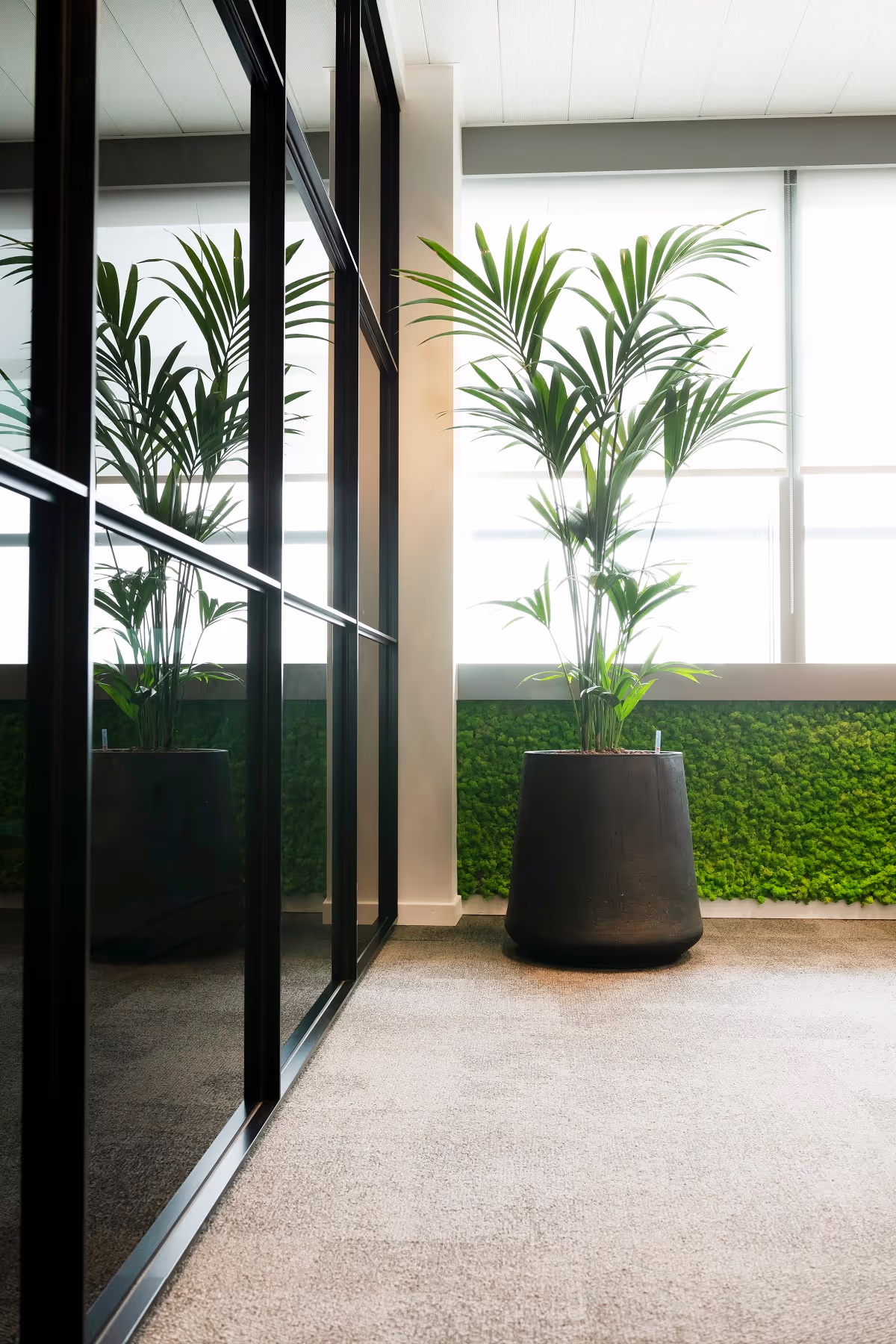Notre force réside dans notre approche globale. Nous choisissons des plantes qui s'adaptent à la lumière et au taux d'humidité du bâtiment et nous veillons à ce que les jardinières s'intègrent parfaitement au design intérieur. C'est ainsi que nous créons un lieu de travail qui n'est pas seulement fonctionnel, mais aussi inspirant et élégant.